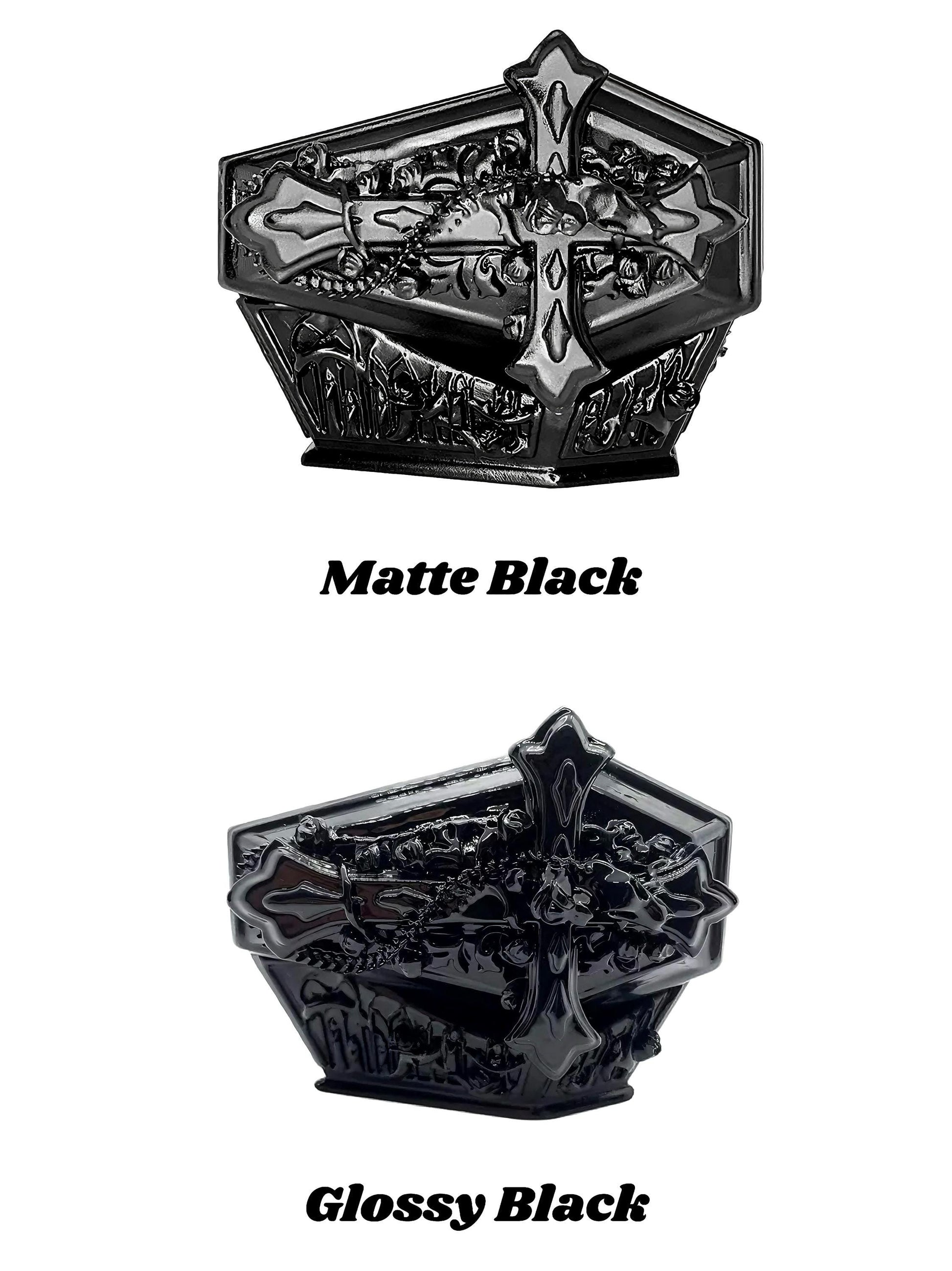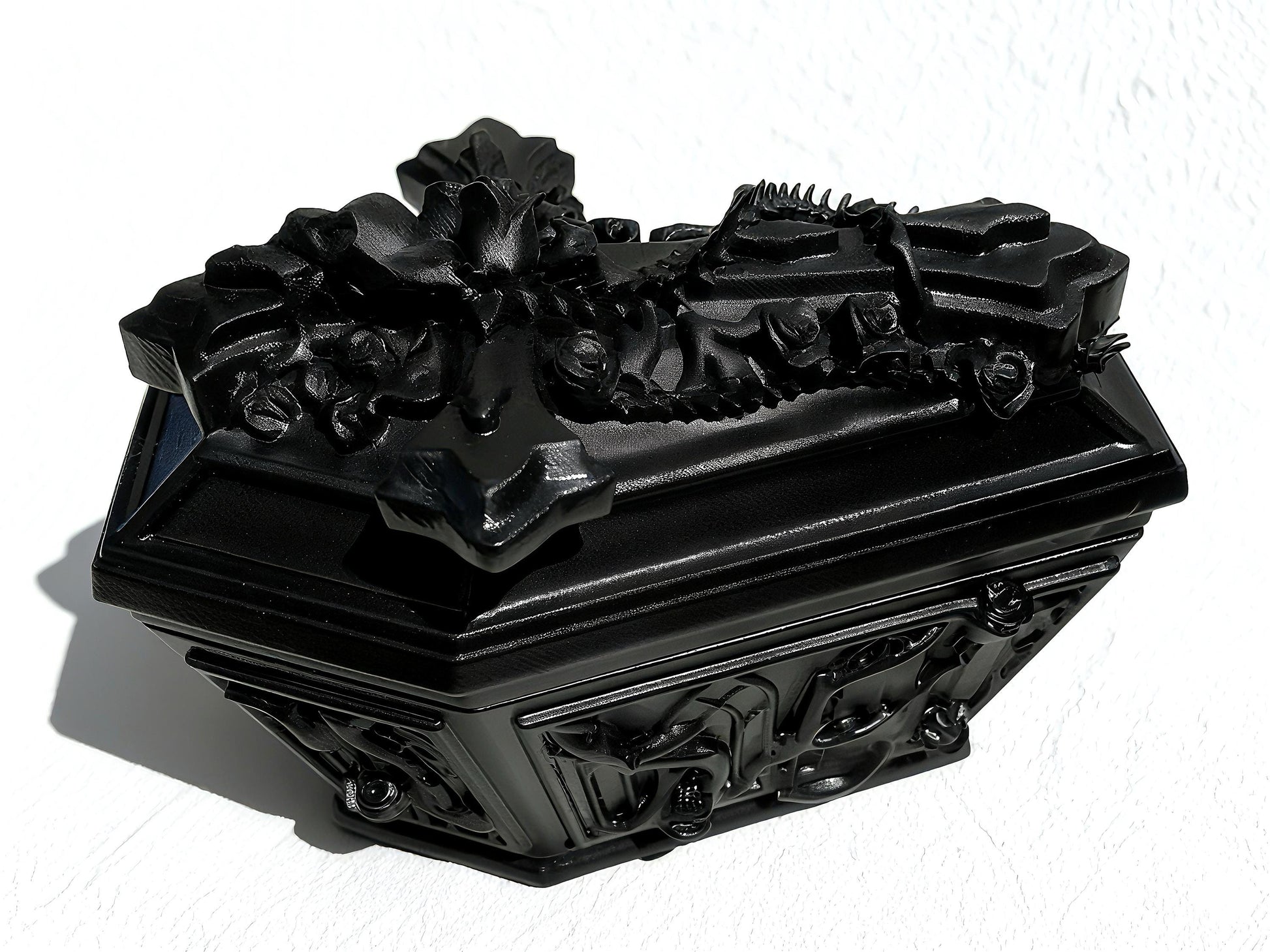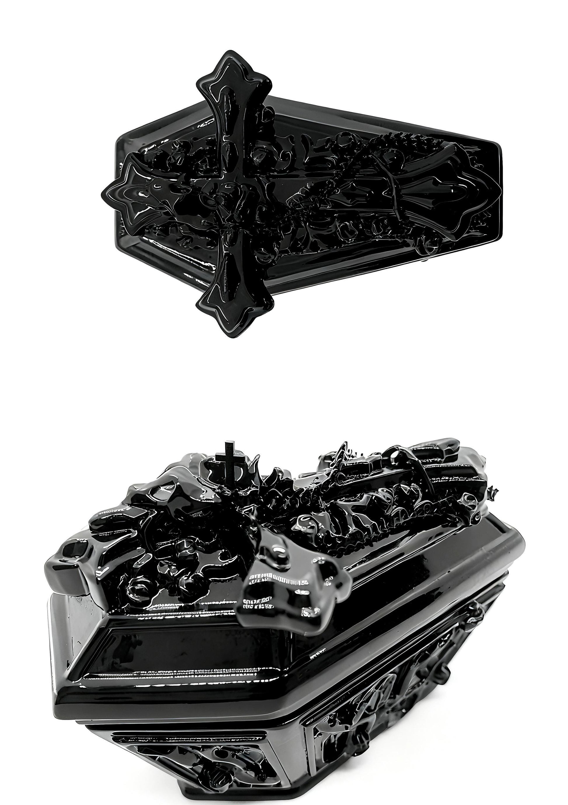 ✦This gothic coffin–shaped protective case is crafted from durable resin with dramatic carved contours, designed for lovers of dark aesthetics and unique statement accessories.