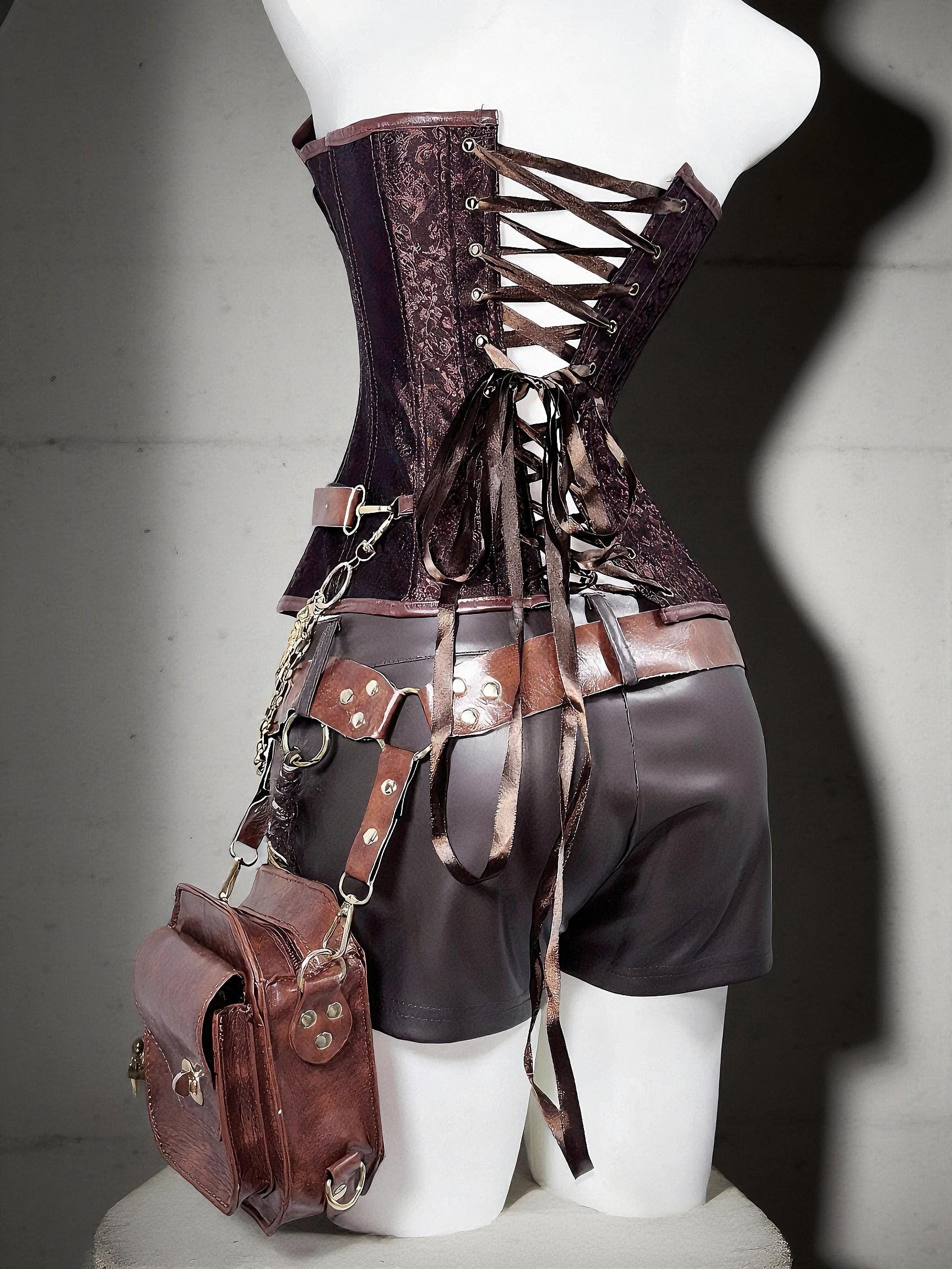 Chain Warden Gothic Pirate Costume: Vegan Leather Corset & Steampunk Shorts, Rave Outfit